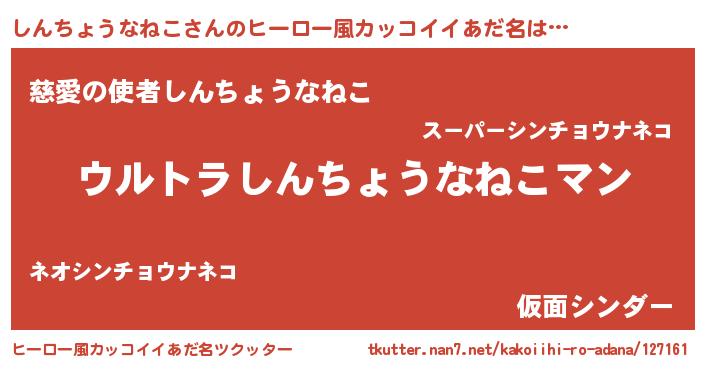 | 意味不明あだ名 | 『しんちょうなねこフォーエバー』 |