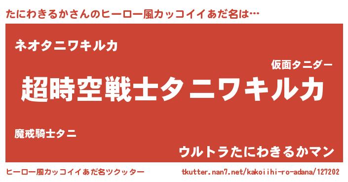 | 女子向けラノベタイトル風あだ名 | 『たにわきるかなんてお断りですっ。』 |