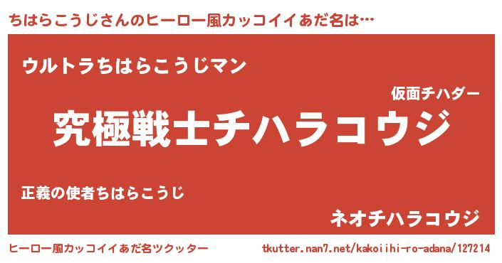 | 男性向けラノベタイトル風あだ名 | 『Re:ちはらこうじから始める異世界生活』 |