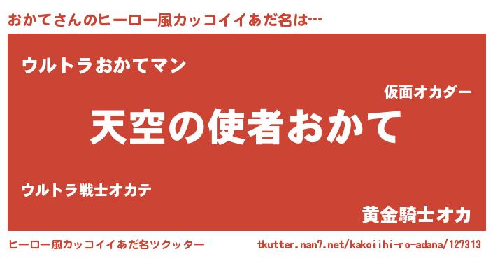 | 女子向けラノベタイトル風あだ名 | 『死神おかての再婚』『おかて様がみてる』 |