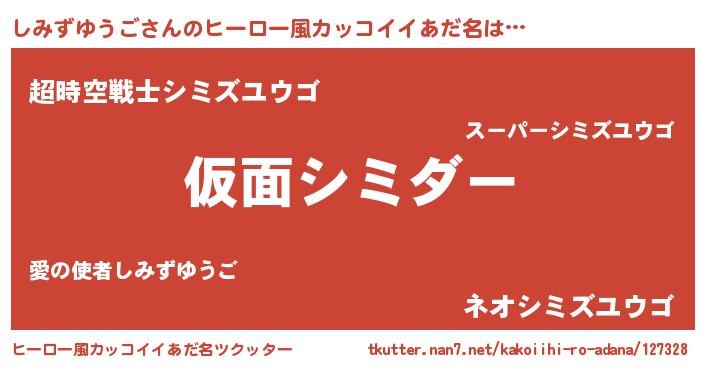 | 男性向けラノベタイトル風あだ名 | 『この素晴らしい世界にしみずゆうごを!』 |