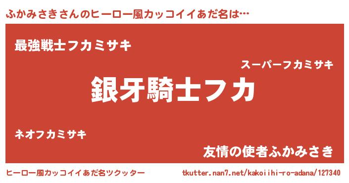 | 男性向けラノベタイトル風あだ名 | 『ふかみさきの嫁は女の子じゃないと思った?』 |