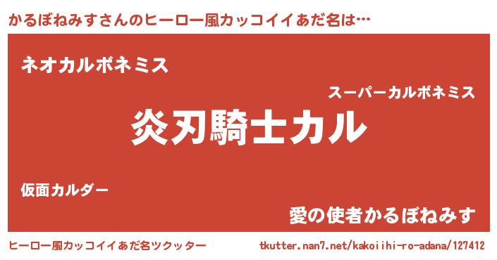 | 男性向けラノベタイトル風あだ名 | 『かるぼねみすに滅ぼされるだけの簡単なお仕事です』 |