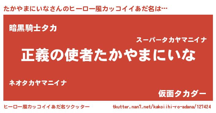 | ポケモン風あだ名 | 『タックウザ』『ヒタカヤマニイナ』 |