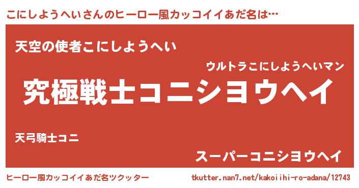 | 意味不明あだ名 | 『自称こにしようへい』 |
