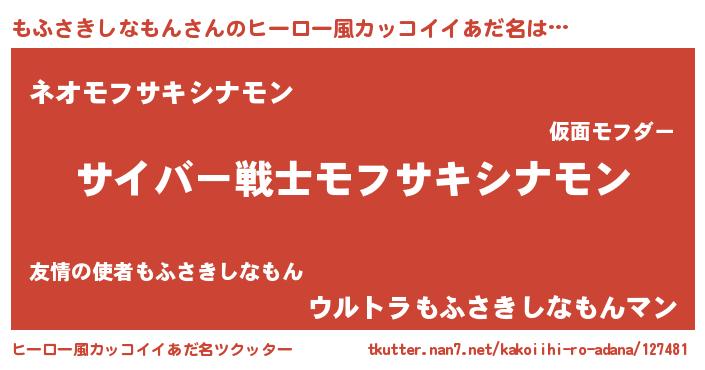 | 男性向けラノベタイトル風あだ名 | 『Re:もふさきしなもんから始める異世界生活』 |