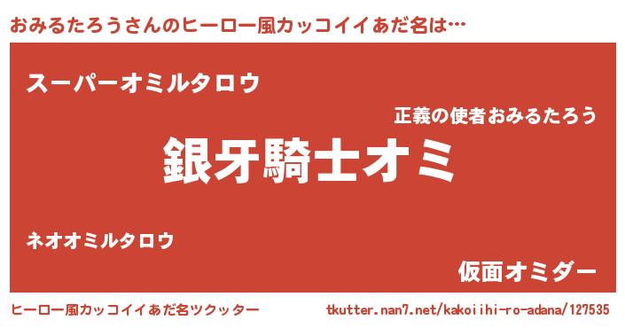 | 男性向けラノベタイトル風あだ名 | 『転生したらおみるたろうだった件』 |