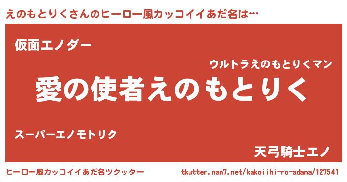 | 男性向けラノベタイトル風あだ名 | 『転生したらえのもとりくだった件』 |
