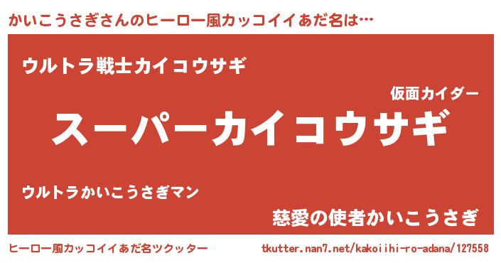 | 女子向けラノベタイトル風あだ名 | 『(仮)かいこうさぎのやんごとなき事情』 |