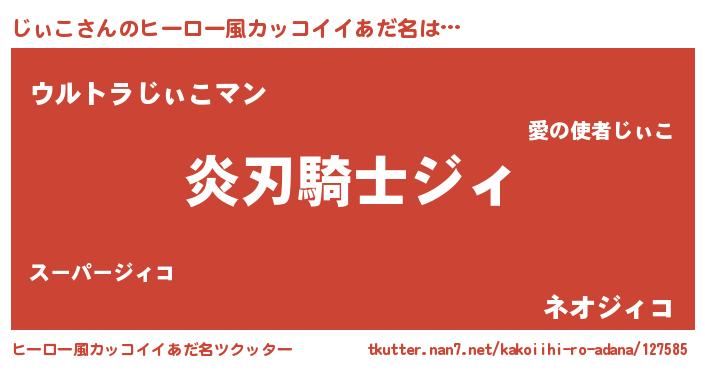 | 女子向けラノベタイトル風あだ名 | 『じぃこ様がみてる』『じぃこ伯爵の花嫁』 |