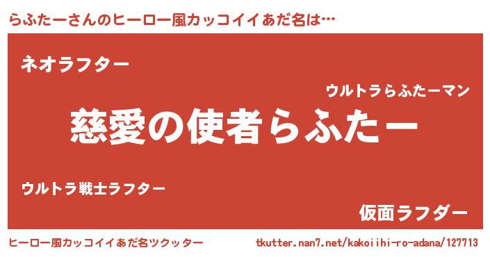 | ヘコむあだ名 | 『らふたー(爆)』『豆乳』『らふお』 |