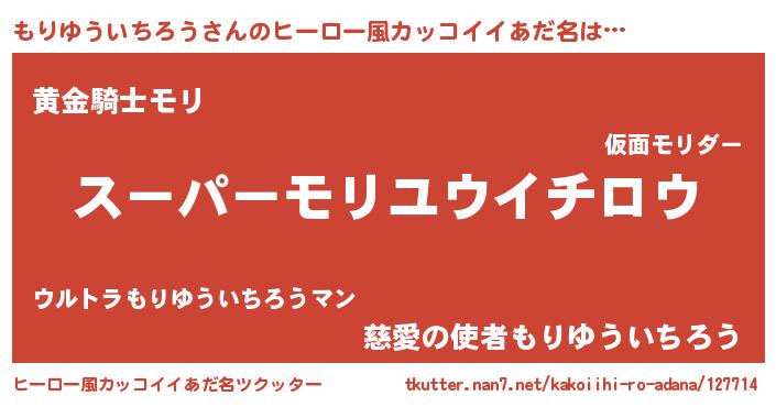 | 男性向けラノベタイトル風あだ名 | 『もりゆういちろうの憂鬱』 |