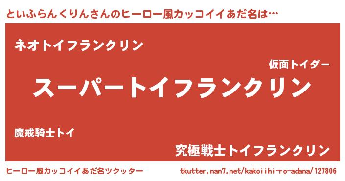 | 男性向けラノベタイトル風あだ名 | 『トイフランクリンアートオンライン』 |