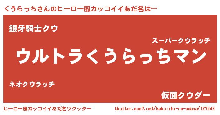 | ポケモン風あだ名 | 『クウラダネ』『ヒクウラッチ』 |
