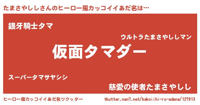| 男性向けラノベタイトル風あだ名 | 『この素晴らしい世界にたまさやししを!』 |