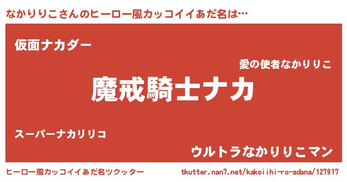 | 男性向けラノベタイトル風あだ名 | 『転生したらなかりりこだった件』 |