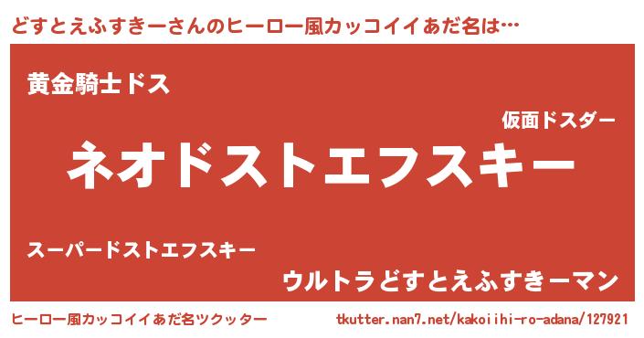 | ヘコむあだ名 | 『どすとえふすきー(小並感)』『どすぷりん』 |