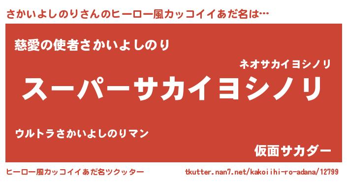 | 胡散臭い通販商品みたいなあだ名 | 『億万長者になれる霊験あらたかなお札…その名も「さかいよしのり」』 |