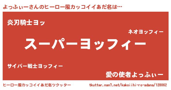| 胡散臭い通販商品みたいなあだ名 | 『億万長者になれる霊験あらたかなお札…その名も「よっふぃー」』 |