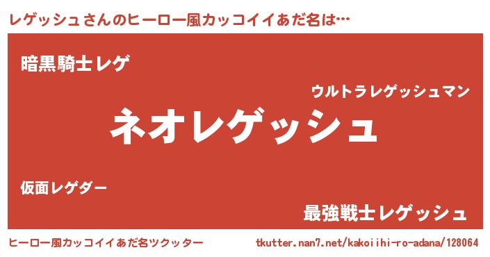 | 男性向けラノベタイトル風あだ名 | 『レゲッシュスレイヤー』 |