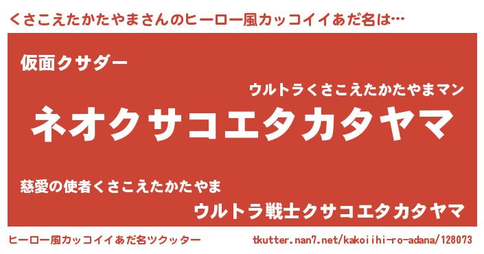 | 男性向けラノベタイトル風あだ名 | 『誰もが恐れるあのくさこえたかたやまが、ぼくの専属メイドになるようです。』 |