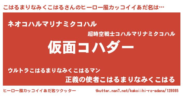 | 伝説のあだ名 | 『聞きしに勝る勇者こはるまりなみくこはる』 |