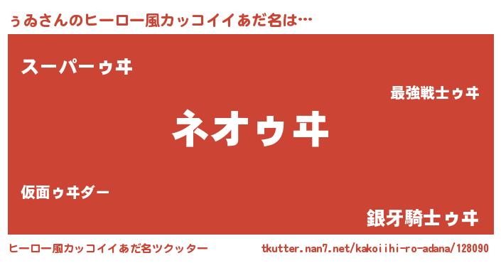 | 男性向けラノベタイトル風あだ名 | 『ぅゐという概念が存在しない退屈な世界 』 |