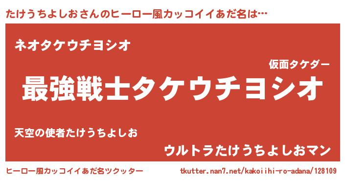 | 男性向けラノベタイトル風あだ名 | 『たけうちよしおに滅ぼされるだけの簡単なお仕事です』 |