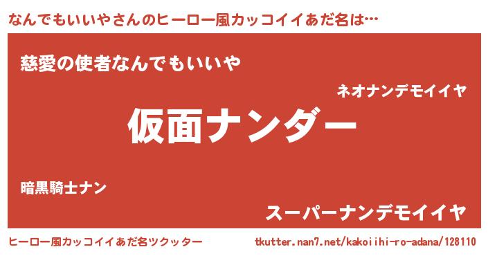 | 男性向けラノベタイトル風あだ名 | 『魔弾の王となんでもいいや』 |