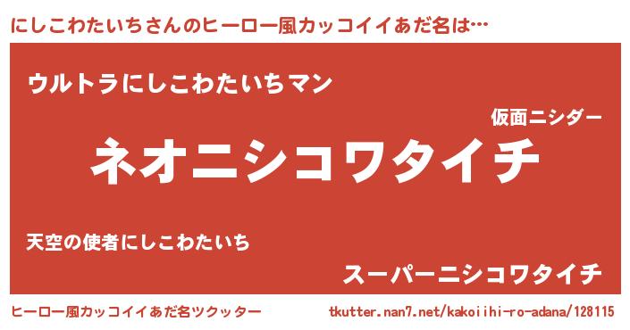| 意味不明あだ名 | 『永久保存にしこわたいち』 |