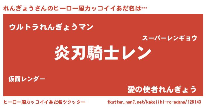 | 意味不明あだ名 | 『とにかく怪しいれんぎょう』 |