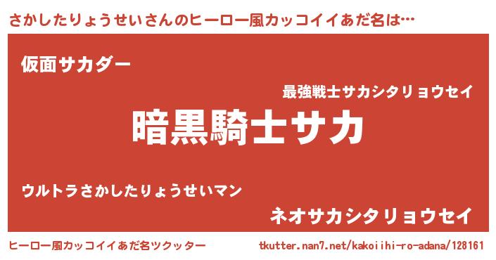 | 胡散臭い通販商品みたいなあだ名 | 『信頼と実績のペンダント…その名も「さかしたりょうせい」』 |