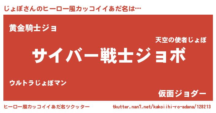 | 胡散臭い通販商品みたいなあだ名 | 『テレビで話題の高麗人参…その名も「じょぼ」』 |