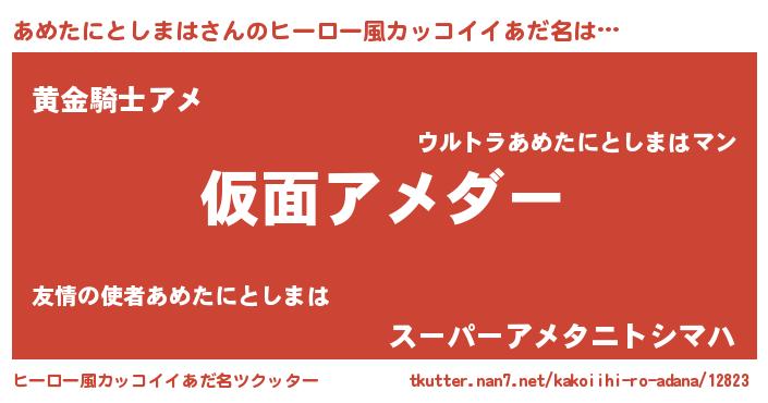 | 意味不明あだ名 | 『住所不定無職あめたにとしまは(14歳)』 |