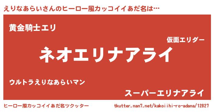 | ヘコむあだ名 | 『えりなあらい(爆)』『えりっちょ』 |