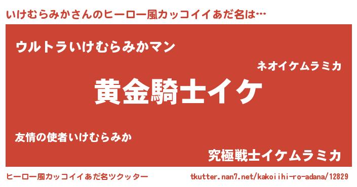 | 胡散臭い通販商品みたいなあだ名 | 『信頼と実績のサプリメント…その名も「いけむらみか」』 |