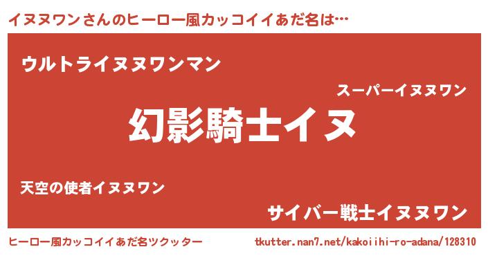 | 男性向けラノベタイトル風あだ名 | 『イヌヌワンの嫁は女の子じゃないと思った?』 |