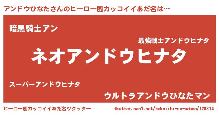 | 女子向けラノベタイトル風あだ名 | 『異世界で失敗しない100のアンドウひなた』 |