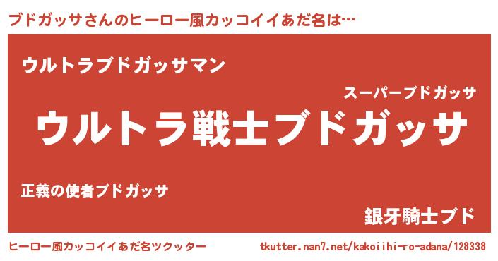 | 女子向けラノベタイトル風あだ名 | 『ブドガッサなんてお断りですっ。』 |