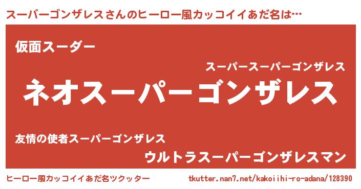 | 男性向けラノベタイトル風あだ名 | 『スーパーゴンザレスという概念が存在しない退屈な世界 』 |