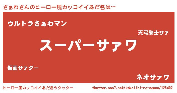 | ファンタジー風あだ名 | 『サァフェル』『エターナルサァワー』 |