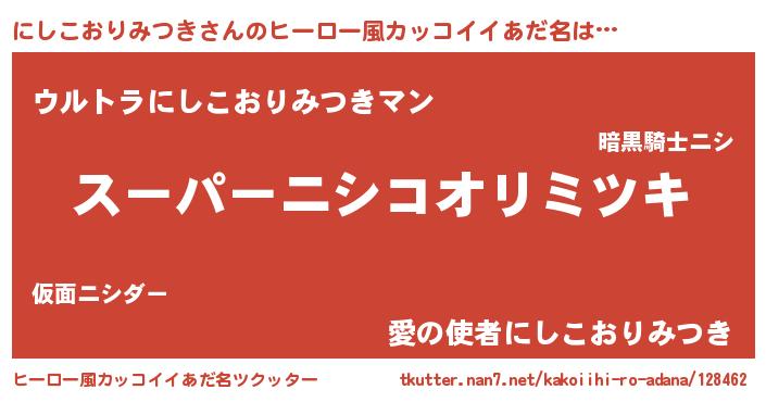 | 女子向けラノベタイトル風あだ名 | 『にしこおりみつき姫と円卓の騎士』 |