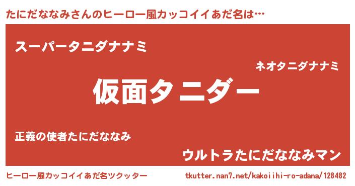 | 男性向けラノベタイトル風あだ名 | 『この素晴らしい世界にたにだななみを!』 |