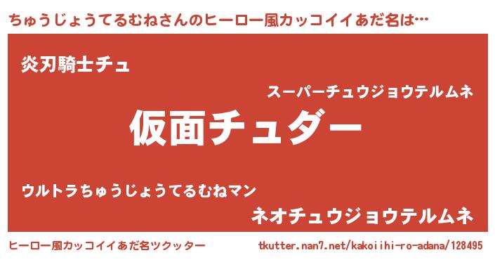 | 意味不明あだ名 | 『住所不定無職ちゅうじょうてるむね(68歳)』 |
