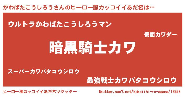 | 胡散臭い通販商品みたいなあだ名 | 『信頼と実績のペンダント…その名も「かわばたこうしろう」』 |