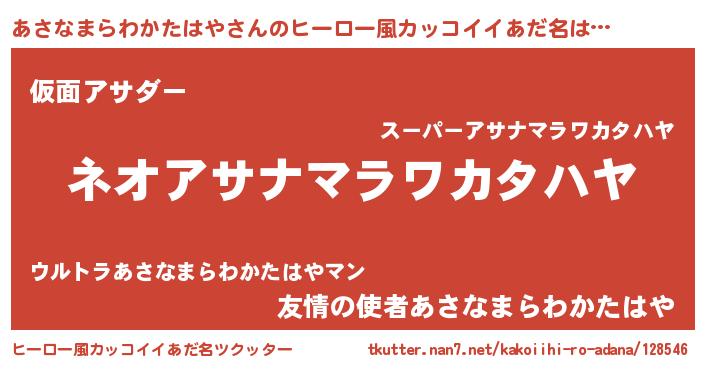 | ヘコむあだ名 | 『あさなまらわかたはや(苦笑)』『あさもー』 |