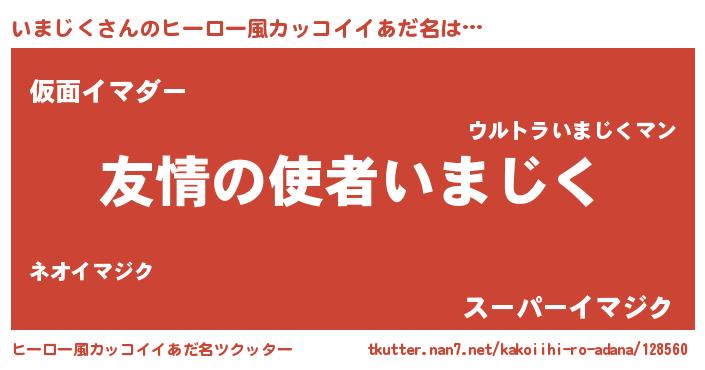 | 男性向けラノベタイトル風あだ名 | 『おまえをオタクにしてやるから、俺をいまじくにしてくれ! 』 |