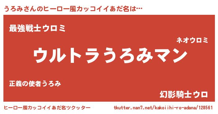 | 女子向けラノベタイトル風あだ名 | 『うろみの雑貨屋さん』『闇のうろみ』 |