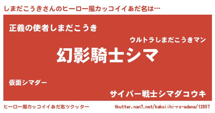 | 男性向けラノベタイトル風あだ名 | 『しまだこうきの嫁は女の子じゃないと思った?』 |