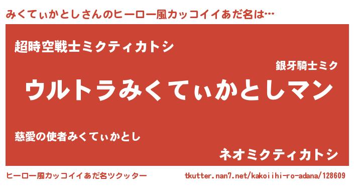 | 意味不明あだ名 | 『みくてぃかとしフォーエバー』 |